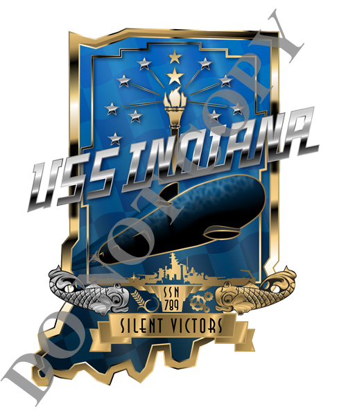 From November 16, 2015 to January 31, 2016 the USS Indiana (SSN 789) held a crest design competition to develop a crest for possible official use by the USS Indiana (SSN 789), currently under construction for the United States Navy by the Huntington Ingalls Industries shipyard in Newport News, Virginia. It was to develop interest in and pride for, as well as a sense of ownership of, this vessel bearing our State’s namesake. Another purpose of the contest was to develop a symbol, that if selected, would build a sense of esprit de corps among the vessel’s crew, the crew’s family, vendors, contractors, Hoosiers and any and all others claiming any relationship with the vessel. The timeline and design criteria were as follows: